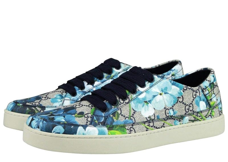 GUCCI Men’s Bloom Flower Print Blue Supreme GG Canvas Sneaker Shoes
