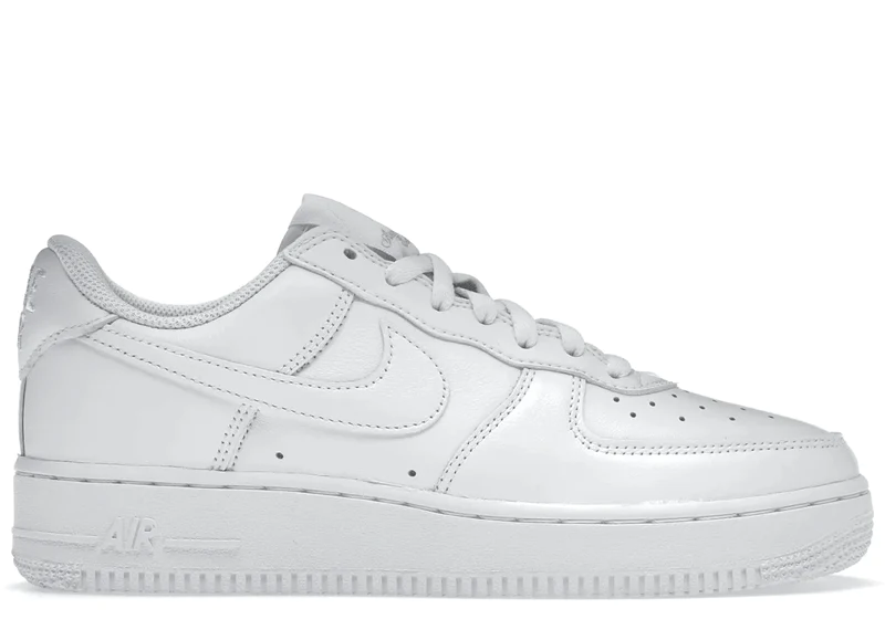 Released in 2007 to celebrate the 25th anniversary of the classic white-on-white, low top Air Force 1, the ‘07’ features a modern take on the iconic sneaker and sports an upgraded, crispier 10A full grain leather white upper with a matching white Air-cushioned rubber sole.